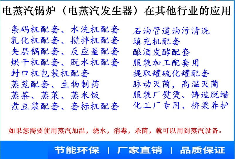 食品 包裝行用的電蒸汽鍋爐是用電加熱的一款新型環保設備,可在幾分鐘產生高溫高壓蒸汽,可滿足企業高溫蒸汽的需求。