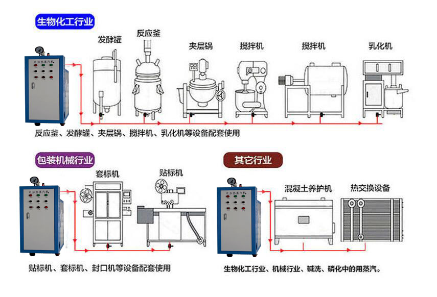 其它適用行業:(油田、汽車)蒸汽清洗行業、(賓館、宿舍、學校、攪拌站)熱水供應、(橋梁、鐵路)混凝土養護、(休閑會所)桑拿洗浴、熱交換設備等。